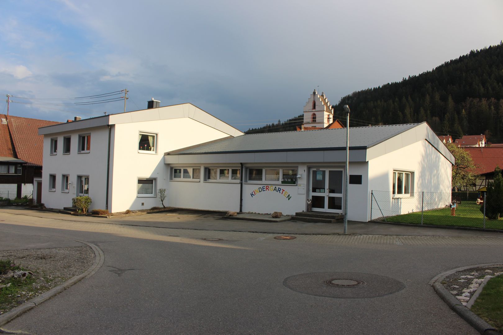 Am 8. März 1976 konnte die Gemeinde das Gebäude Im Gässle, Nr. 5, erwerben. Bereits im Herbst 1976 wurde das Gebäude abgebrochen und mit der Neubaumaßnahme begonnen. Mit der Planung wurde das Architekturbüro Staller und Betsch, Wehingen, beauftragt. Das Richtfest konnte im November 1976 gefeiert und der neue "Bischof Wilhelm von Reiser Kindergarten" im Rahmen eines Heimatfestes am 28. August 1977 eröffnet werden. Im Gebäude untergebracht sind ein Gruppen- und Vorbereitungsraum mit einer Fläche von 80 qm, ein Mehrzweckraum mit 58 qm, Funktionsräume und im Obergeschoß eine Wohnung mit einer Wohnfläche von 85 qm. Die Nutz- und Wohnfläche beträgt insgesamt 310 qm. Die Baukosten betrugen insgesamt 437.000 DM. Landes- und Landkreis-Zuschüsse in Höhe von jeweils 52.000 DM und Spenden in Höhe von 7.667,80 DM konnten zur Finanzierung eingesetzt werden.