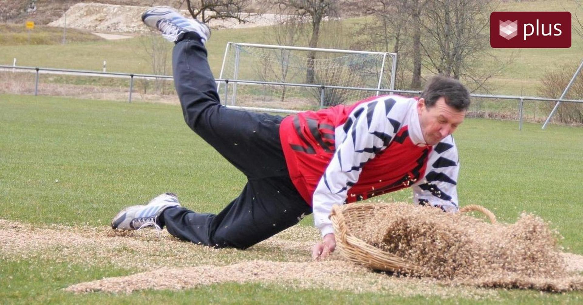 Der Schupfer rennt auf den Sportplatz.