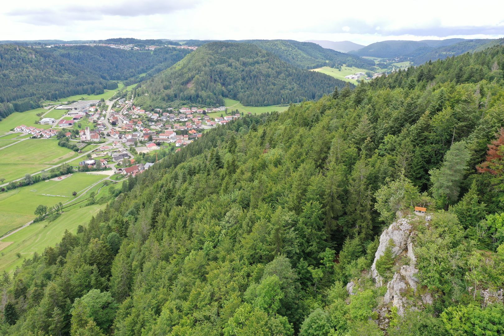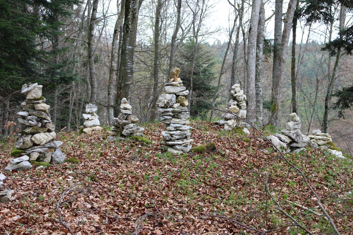 Der Katzenfels ist ein Aussichtspunkt auf ca. 915m ü.N.N. Du wirst hier von einer ganzen Steinmännle-Mannschaft empfangen.