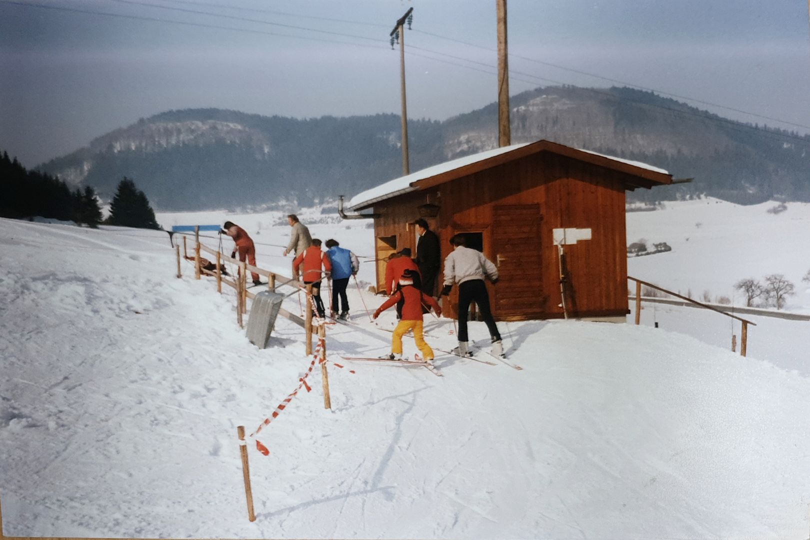 Im Jahr 1981 baute die Sparte Ski an diesem Hang einen Skilift, der 1983 durch eine Skihütte ergänzt wurde.].jpg)