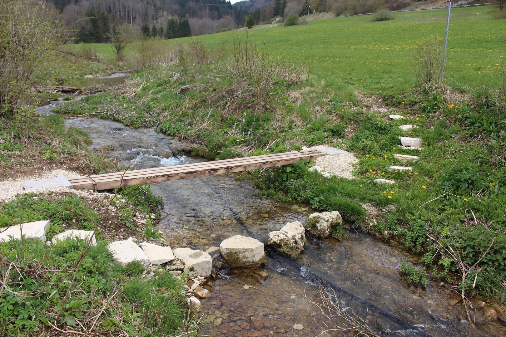 Um trockenen Fußes auf die andere Seite den Anhauser Baches zu gelangen wurde hier ein kleiner Steg errichtet.